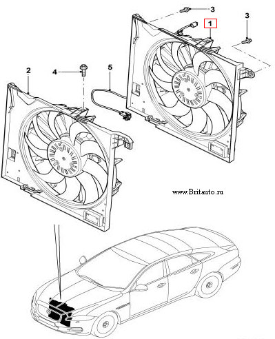 C2D38737: Вентилятор охлаждения двигателя основной на Jaguar XJ, XF и XK, на 3,0Л Бензин Supercharget и 5,0Л Бензин Турбо и атмосферный
